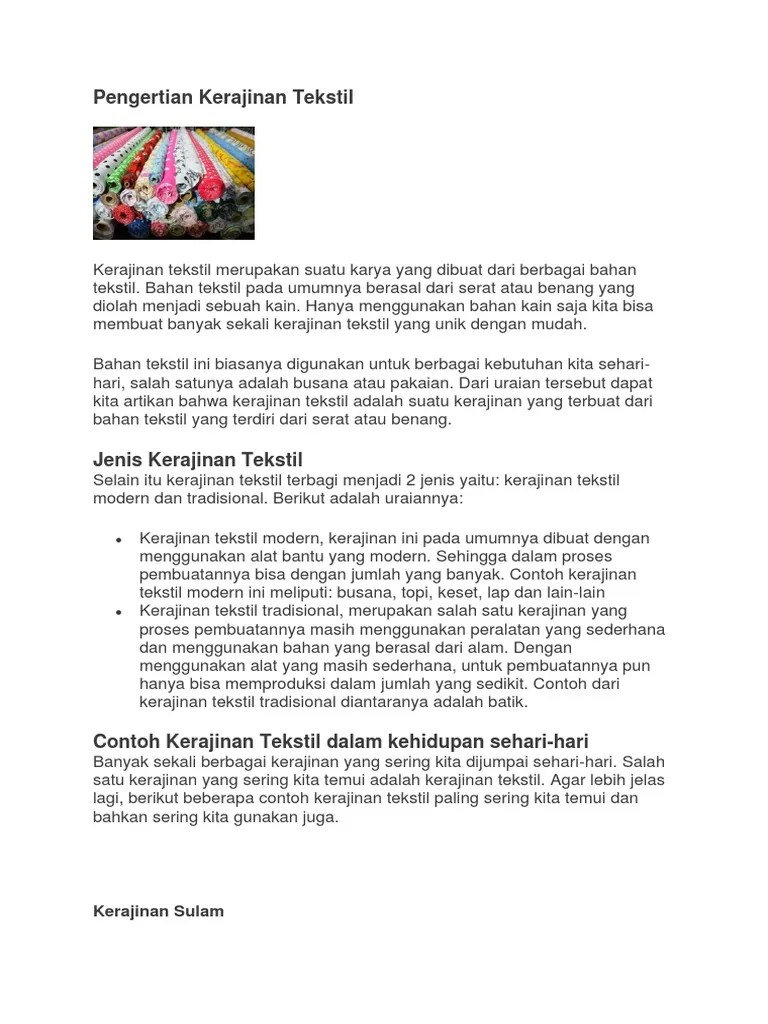 Contoh kerajinan tekstil tradisional di indonesia adalah kain tenun,. Langkah awal membuat kerajinan tekstil adalah. Makrame adalah seni kerajinan simpul dengan mengerjakan rantaian benang awal dan juga akhir sampai membentuk tenunan pada rantai benang. Untuk membuat kerajinan tangan ini membutuhkan langkah awal yaitu mendesain . Salah satu bahan yang bisa moms buat sebagai kerajinan adalah kain.